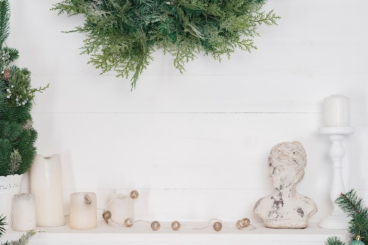 • Wohnzimmer: Ein großer Korb mit einer Wolldecke, ein einfacher Adventskranz aus Tannenzweigen (keine überflüssigen Ornamente) und drei Kerzen in verschiedenen Höhen.